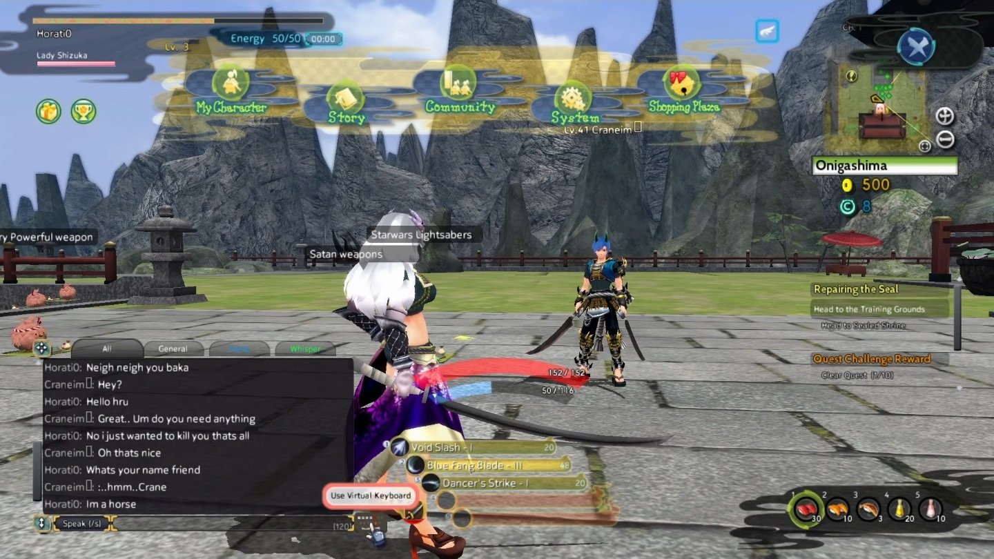 Onigiri é um jogo de MMORPG de Ação aonde você pode usar diversos tipos de armas para combater monstros. Em um mundo fantástico que mistura história, lendas, folclore e contos de fadas japoneses, a história levará você e seus companheiros em uma emocionante jornada. Além da função Jogar em Grupo, você poderá escolher 1 de seus 8 companheiros para lutarem juntos em batalhas contra poderosos monstros. 1 Jogador De 2 a 4 jogadores No mínimo 5GB Uso Online (necessario)