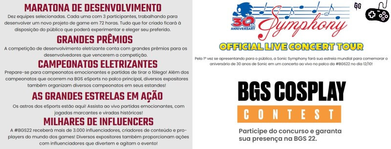 Em 2022, o evento traz para o público uma programação especial de reestreia, após uma longa espera de dois anos. Assim, o BGS não se limita apenas aos expositores de jogos de grandes marcas. Nele também rolarão encontros com grandes influenciadores, além de uma competição de cosplay com premiações exclusivas.