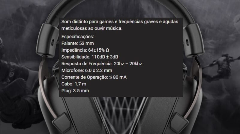 - Drivers de som de 53mm, que garantem uma boa qualidade de áudio;