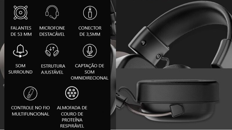 - Microfone destacável, que permite o uso do equipamento apenas como headphone;