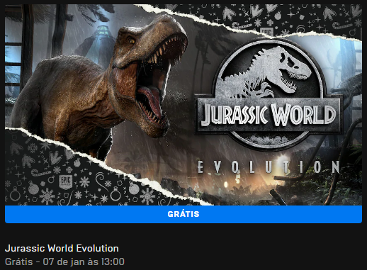 Para o último jogo semanal do ano, a Epic Games está disponibilizando o jogo Jurassic World Evolution de graça em seu site até o dia 07/01