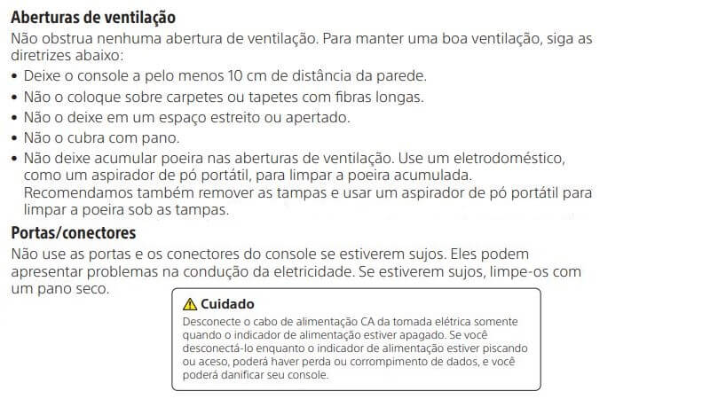 - Realize a limpeza de seu console regularmente, tirando a tampa e o excesso de poeira;