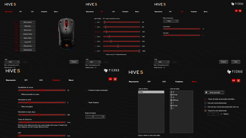 - Software simples e funcional, que permite reconfigurar todos os botões, atribuir macros, alterar a iluminação, ajustar o DPI e a sensibilidade do mouse e salvar em diferentes perfis.