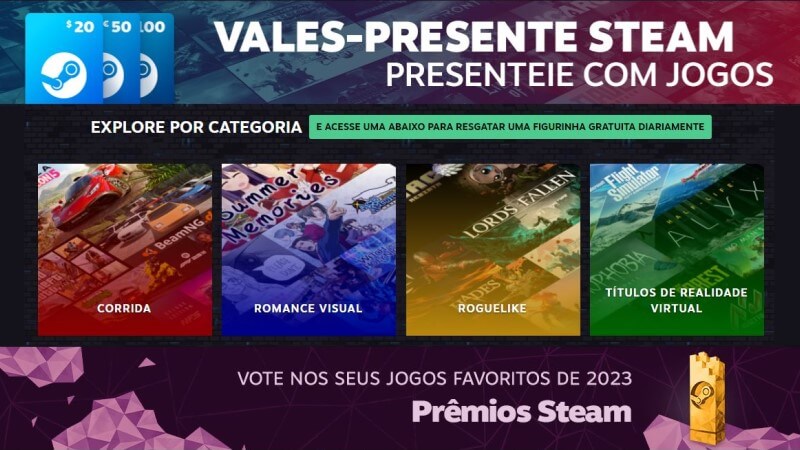 • Promoções de cartões-presente – por fim, até os tradicionais cartões-presente da Steam cairão de preço. Mas é preciso ficar monitorando os resultados.