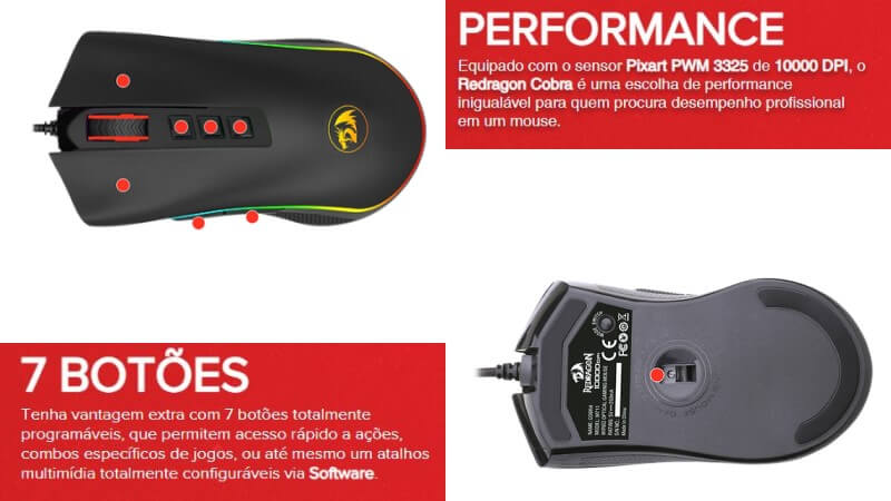 Outros detalhes interessantes do Redragon Cobra gaming mouse