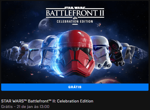 O jogo STAR WARS Battlefront II: Celebration Edition – PC ficará disponível para resgate gratuito no site da Epic Games até o dia 21/01!