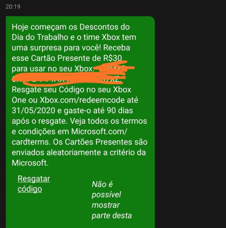 Segundo relatos, a empresa Microsoft está distribuindo cartões-presente (gift cards xbox) para comemorar o dia dos trabalhadores. Você foi um dos felizardos a receber um prêmio desses?