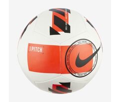 A Bola de Futebol Nike Pitch possui design liso e durável com estampas ousadas que facilitam a visualização da bola em campo.