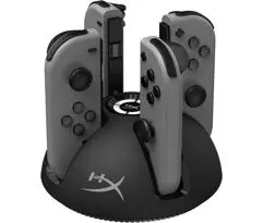O carregador HyperX ChargerPlay Quad carrega simultaneamente até quatro controles Joy-con e possibilita muitas horas de jogo sem parar. Possui um encaixe fácil e prático para manter os controles presos firmemente à sua base estável, que indica o status de carga com um display luminoso.