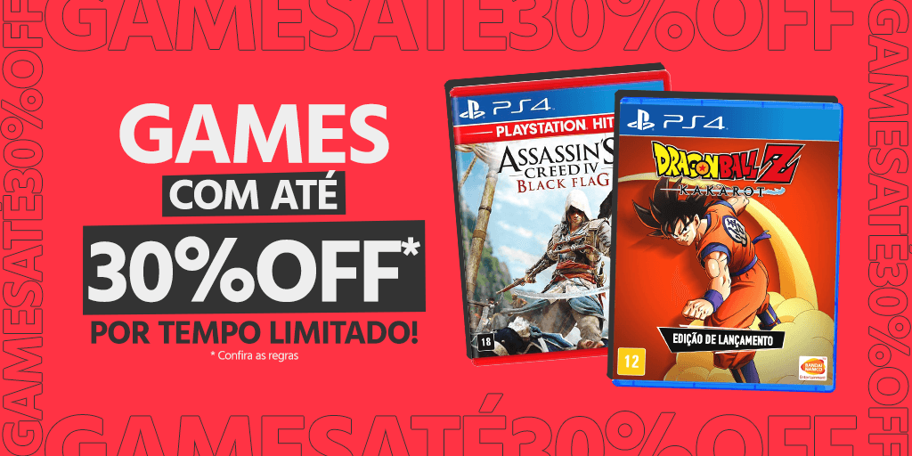 • Desconto de 30% OFF nos itens selecionados com o cupom GAMES30OFF;
