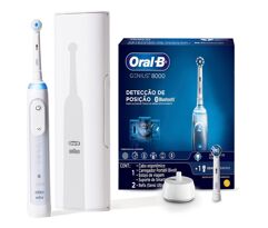 Escova Dental Elétrica Genius 8000 com 2 refis e alimentação por bateria.