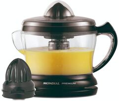 Com o Espremedor Turbo Citrus Premium Mondial E-02 você faz sucos deliciosos de forma rápida e preserva o frescor da fruta. A capacidade de 1,25 litros produz bastante suco e basta pressionar a fruta no espremedor para acionar o equipamento. Acompanha cone extra para você escolher seu suco favorito, com o máximo rendimento. Conta ainda com dupla rotação e tampa de proteção. Saiba mais sobre o E-02 da Mondial: