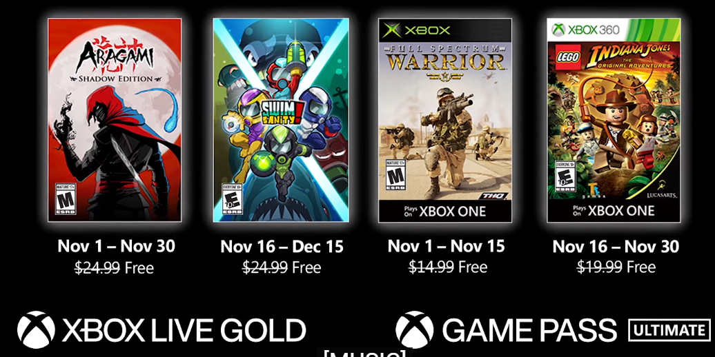 Jogos grátis de novembro no Games with Gold para membros Live Gold