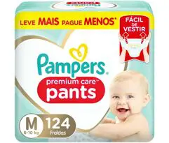 A Pampers Pants Premium Care M 124unid sai por R$140,61