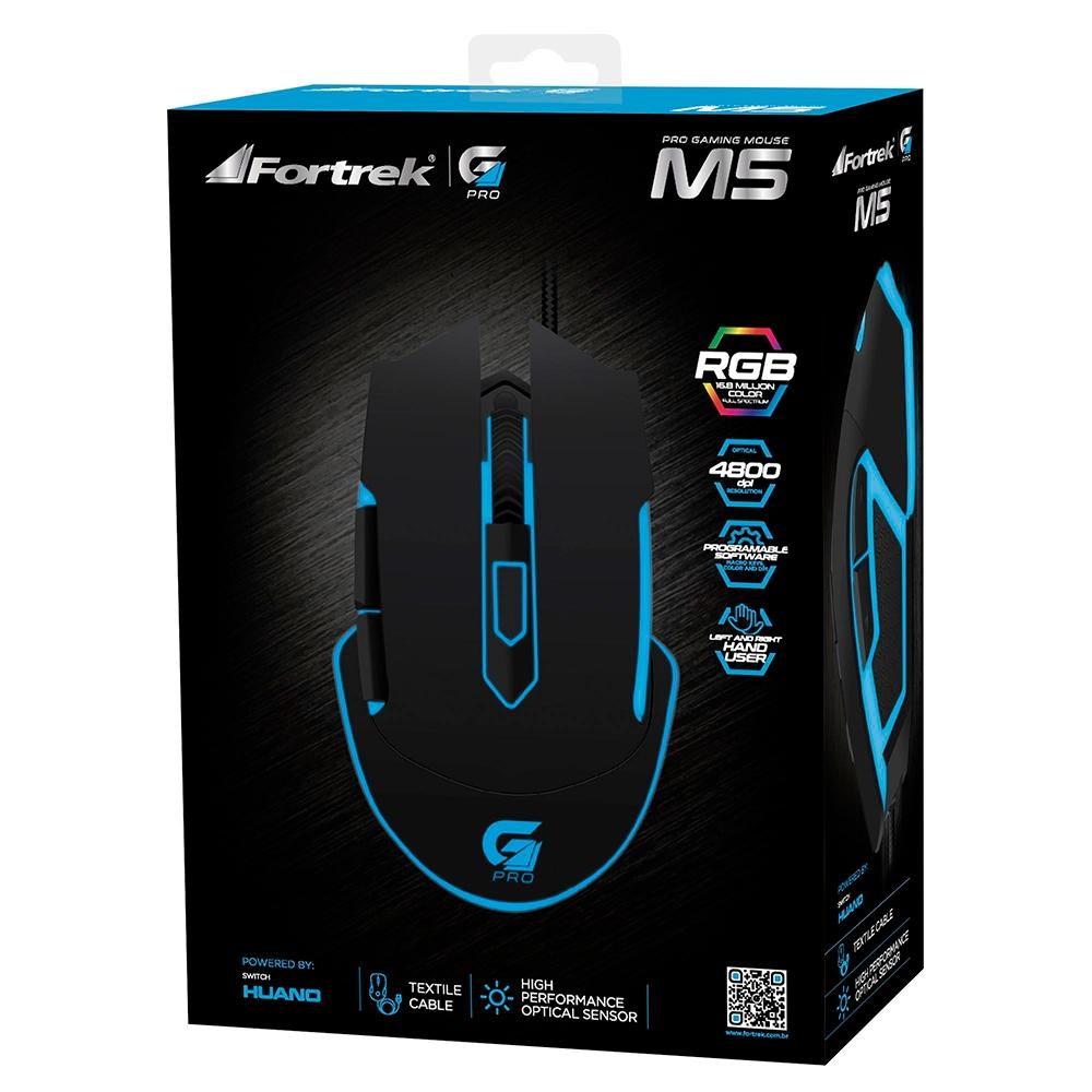 É a hora de virar o jogo ! Com o mouse óptico gamer USB Pro M5 Rgb – Fortrek. Com suas laterais texturizadas, resolução de 4800 DPI, um software próprio para customização e um scroll emborrachado para melhor aderência você vai se destacar durante o seu jogo para o desespero de todos os inimigos. Tudo que você precisa para o visual, o conforto e a jogabilidade.Mouse Gamer Fortrek 4800DPI, RGB, M5 – 64385
