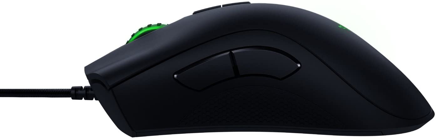O design ergonômico com laterais emborrachadas ajuda a aumentar o conforto da pegada. Mas é importante notar que o desenho do mouse gamer Razer Deathadder favorece o uso da mão direita.