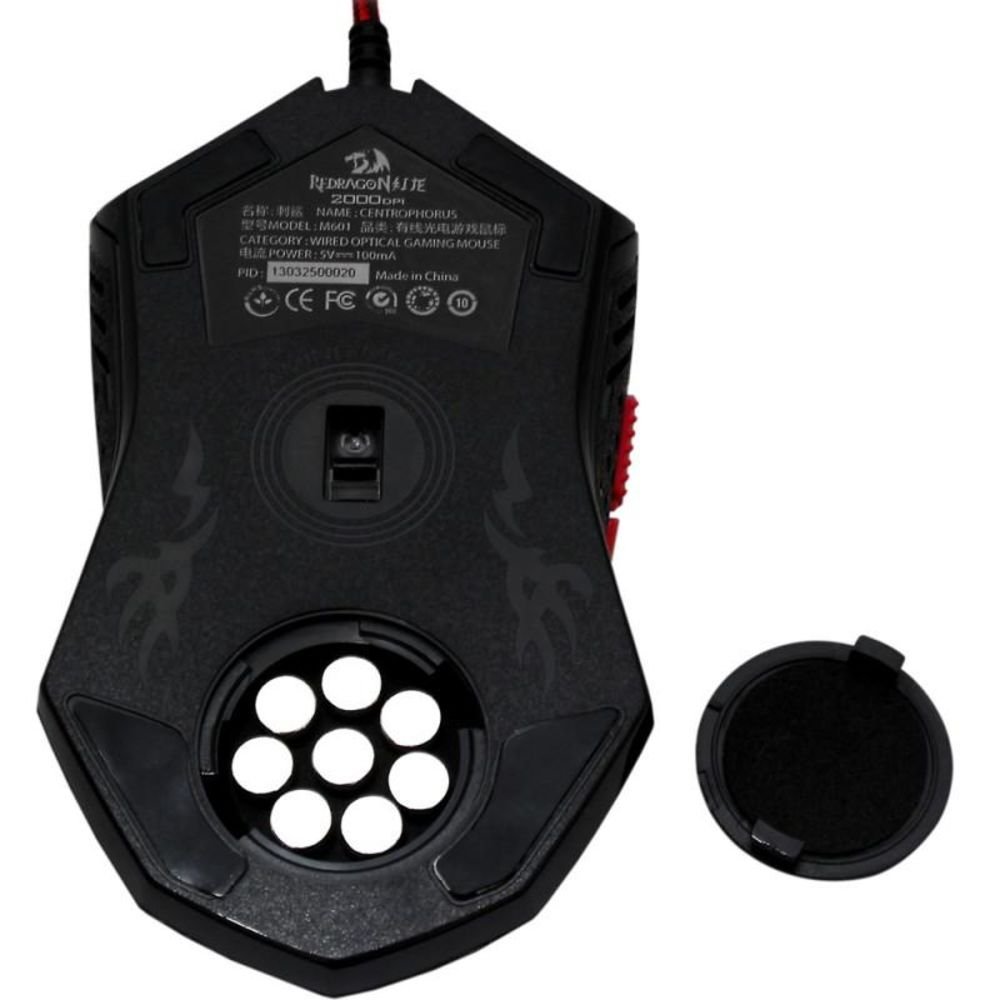 O mouse gamer centrophorus da redragon traz diversos fatores que ajudam os gamers, além da maior velocidade para executar seus movimentos, ele é ergonômico trazendo o mesmo conforto para os diversos tipos de pegadas. Possui iluminação backlight em led vermelho, além de um botão para troca de dpi (3 velocidades diferentes com o toque de um botão).o periférico também possui ajuste de peso e equilíbrio, com as 8 peças de peso de 2,4g encontradas na parte de baixo do mouse. Seu material é muito resistente (plástico abs), trazendo uma grande durabilidade. Seu cabo trançado também aumenta a durabilidade e resistência do mesmo. Além disso, ele possui o sensor avago, que garante um bom resultado durante os games.
