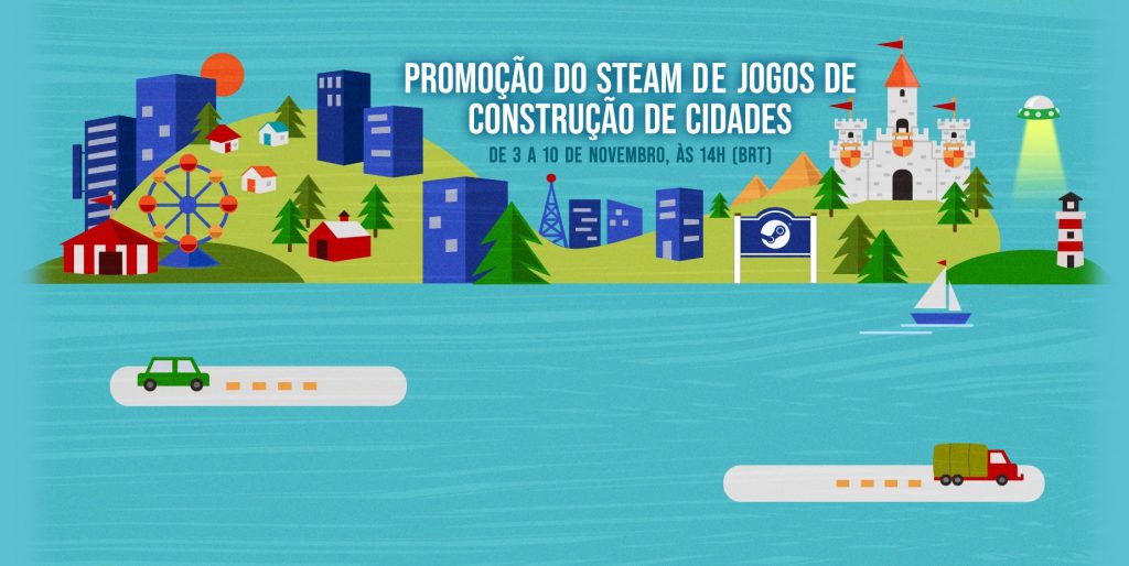 Nova promoção na Steam incluindo jogos relacionados à criação de cidades, tipo Sim City, mas com várias opções diferentes.