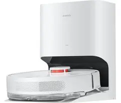 Compartimento automático de resíduos. O design de recolha de pó de dois canais da base, com a sua poderosa sucção de 17000 Pa, esvazia o depósito instantaneamente. O saco para pó pode coletar e esvaziar o pó mais de 60 vezes e sela-se automaticamente ao recolher, para que nem você nem o ambiente fiquem cobertos de pó