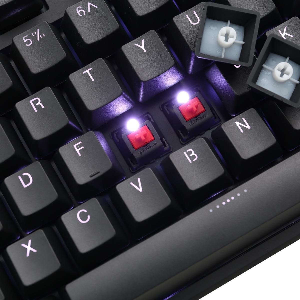 ARM M3 MCU: O Ducky one é alimentado pelo poderoso Processador ARM M3, que permite avançadas funções e um impressionante tempo de resposta. Taxa de Retorno: O Ducky One tem resposta de 1000Hz, reduzindo muito o atraso entre a tecla pressionada e a resposta do computador. Pés com dois estágios: O Ducky One possui o exclusivo desenho com dois estágios, permitindo ao usuário ajustar a altura do teclado em 3 diferentes níveis.